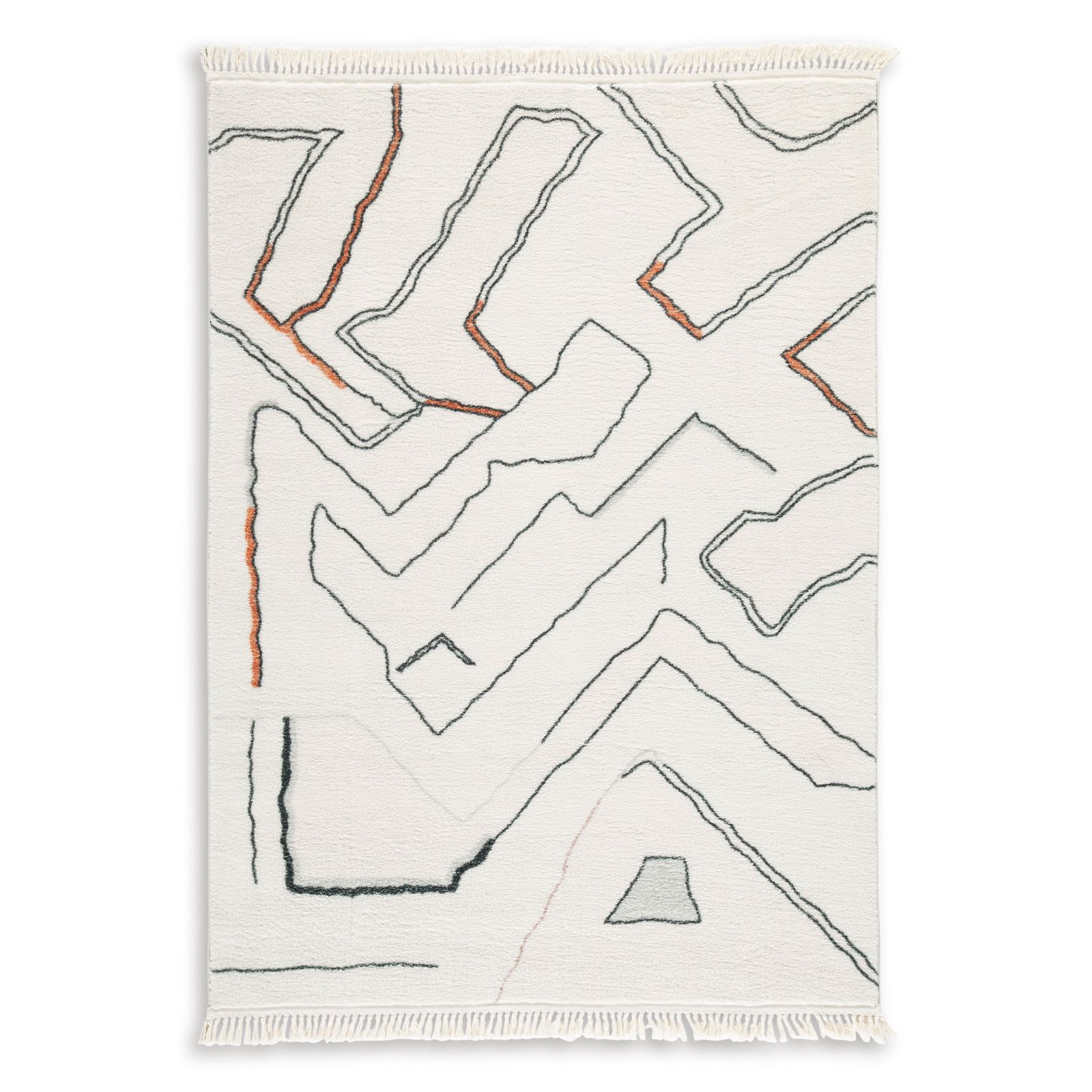 Introducing the Cadeworth 5' x 7' Rug, a statement piece that is crafted from superior polyester with imitation cashmere, providing a plush and silky underfoot experience. Its cream color serves as the perfect canvas for the printed abstract design, which adds a modern flair to any room. The rug features a comfortable 9mm pile and is beautifully finished with a 3.5ā€ knotted tassel edge, infusing your space with a touch of elegance. The Cadeworth Rug is a tasteful blend of comfort and modern design, perfect for enhancing and warming up your living area.