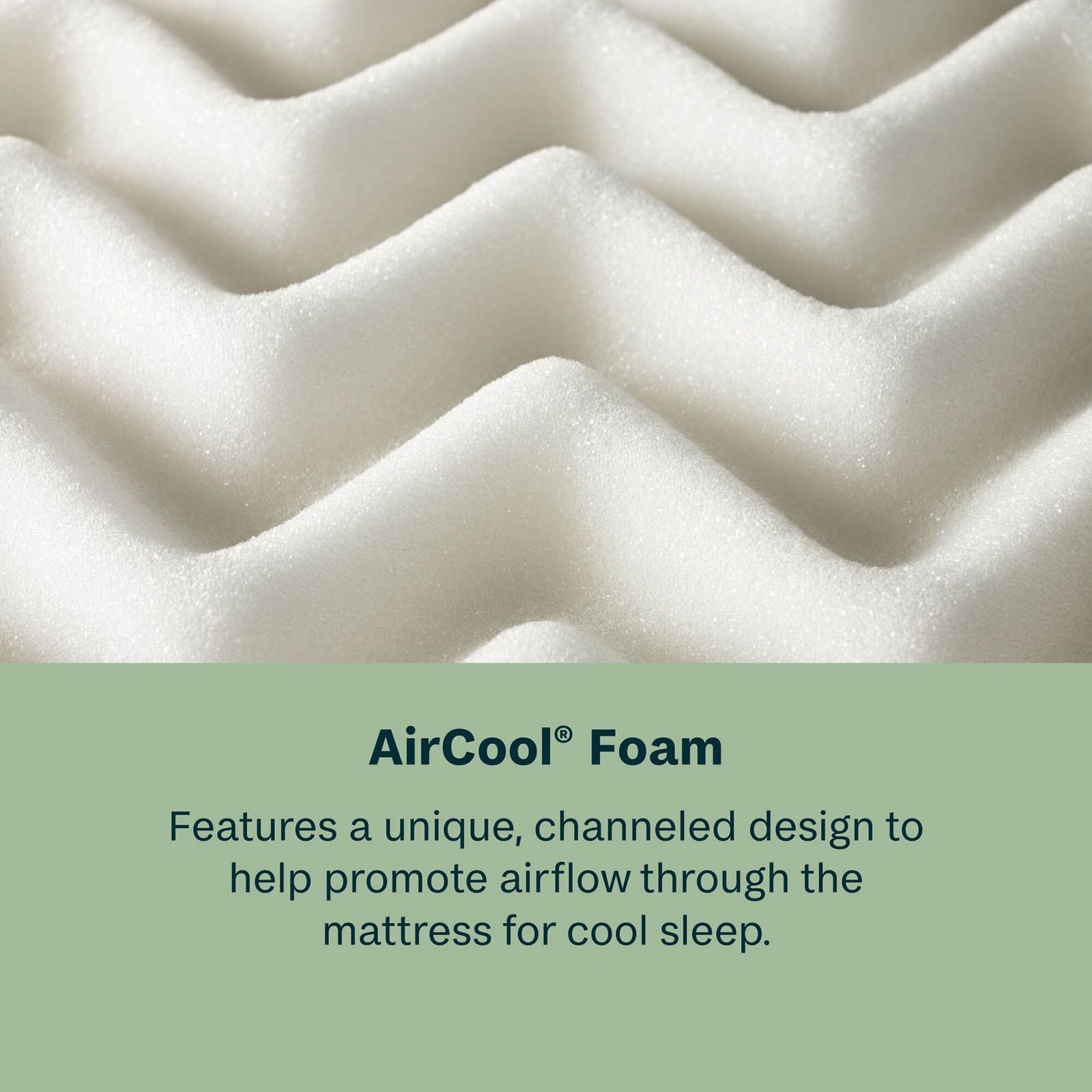 • AirCool Foam provides cool, comfortable sleep with a unique channeled design that allows airflow through the mattress