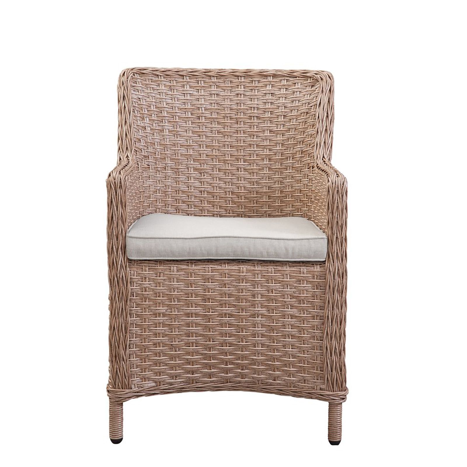Gather outdoors in comfort and style with the Biscayne Outdoor Round Dining Table & 4 Chairs group. This 5-piece set includes a round dining table and four side chairs, all crafted with durable aluminum and finished with a rust-proof powder coating. Hand-woven, weather-resistant wicker adds a relaxed, coastal touch, while included seat cushions provide extra comfort. The table features a built-in umbrella hole (umbrella cap not included) and seats up to fourāperfect for casual meals or evening conversations.