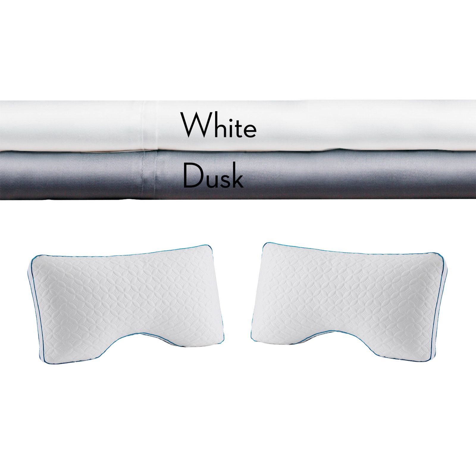 Upgrade your sleep experience with the Better Malouf Sheet and Pillow Bundle, designed for ultimate comfort and support. Choose between queen or king size and select your preferred sheet color—Dusk Gray or White. The included Dusk Botanical Sheet Set, crafted from 100% TENCELā„¢ Lyocell fibers, offers a silky-smooth, breathable, and eco-friendly feel, complete with Universal Fit extra-deep pockets to stay snug on mattresses up to 18ā€ high. Pair your sheets with two Flex Shoulder Pillows, specially designed for side sleepers. Featuring a unique shoulder cut-out shape, a customizable shredded memory foam and down alternative fill, and a cooling HyperChill Cover, these pillows deliver personalized support and refreshing comfort. Certified for safety and backed by a 5-year limited warranty, this bundle is the perfect blend of luxury, practicality, and style for your bedroom.