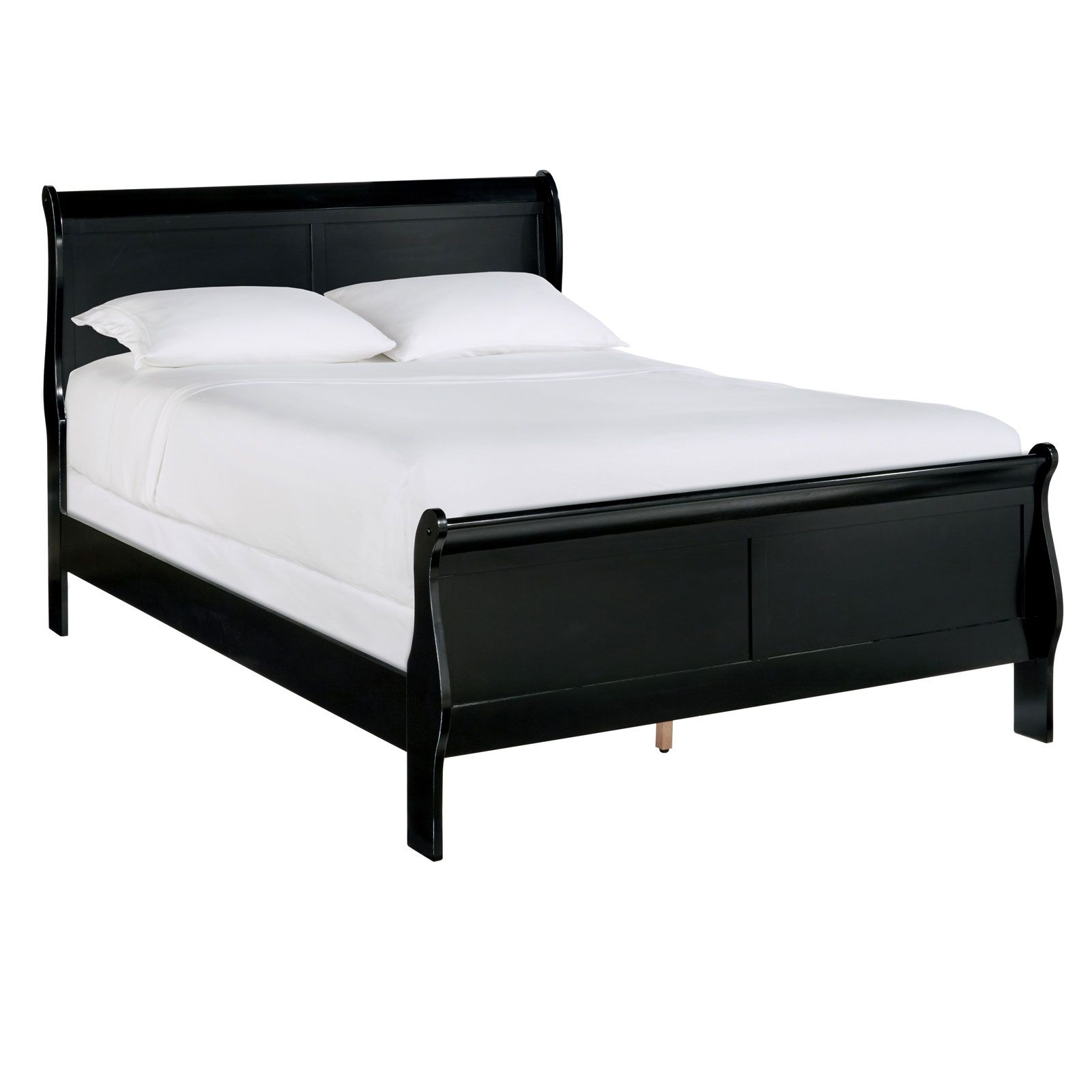 Traditional in design and modest in scale, this group takes its design inspiration from classic Louis Phillippe styling. Features a black finish and a lot of flair. With a classic sleigh style, this bed is a perfect addition to your traditional bedroom.
