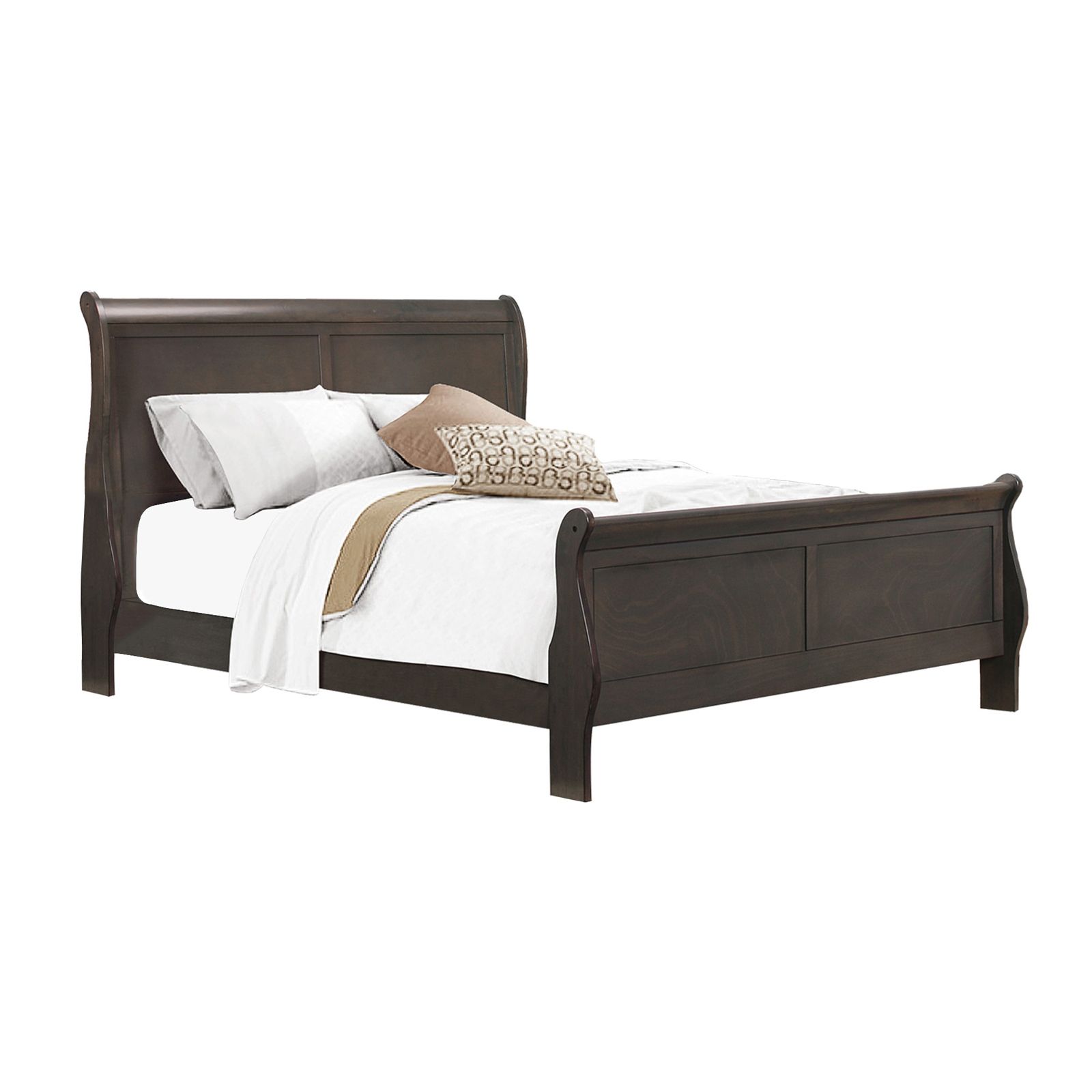 Traditional in design and modest in scale, this group takes its design inspiration from classic Louis Phillippe styling. Features a stained gray finish and a lot of flair. With a classic sleigh style, this bed is a perfect addition to your traditional bedroom.